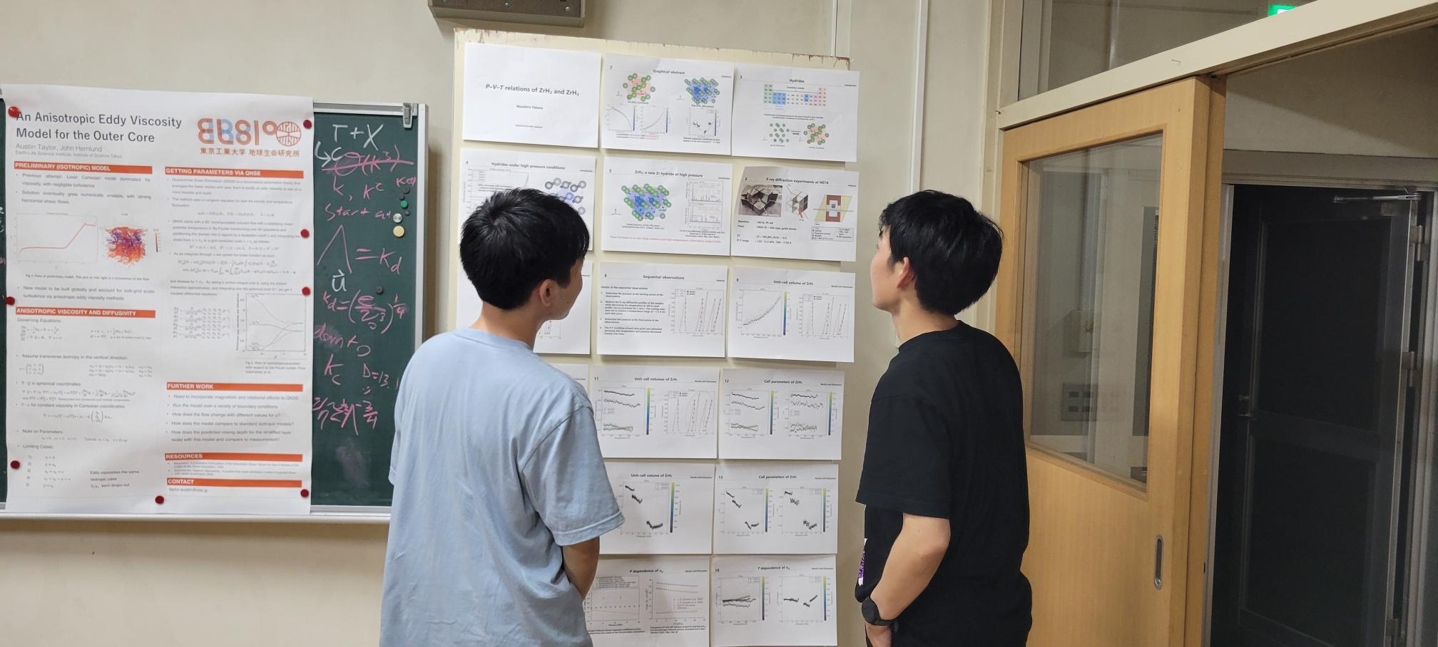 一日目にはナイトポスターセッションも行われ、この酷暑でも冷房が不要な涼しい部屋で、熱い議論が交わされました。四日目は四国カルスト・天狗高原に移動し、日本一標高の高いカルストの石灰岩を見学したり、カルストテラス内の資料館で西日本の形成過程や現在の四国の地質について学習しました。