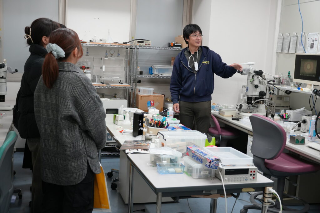 2025年11月28日(金)、宇宙進化研究センターと合同で、学部1年生を対象とした見学会を行いました。「課題挑戦キックオフセミナー」受講生の中から希望者を募り、当日は22名の学生が参加しました。研究施設の見学に加え、センターの概要や、実験装置を用いて進めている研究内容について紹介しました。